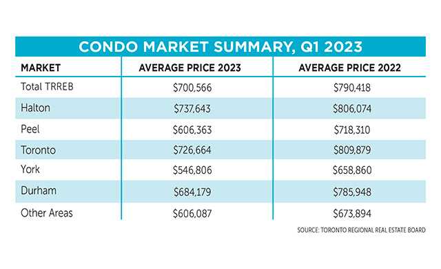 In line with the general market trends, condominium unit sales and the average selling price were lower in the first quarter of 2023 compared to the same period in 2022. However, strong population growth, tight rental market conditions and improved first-time buying intentions will result in renewed growth in condo sales this year, according to the Toronto Regional Real Estate Board (TRREB).