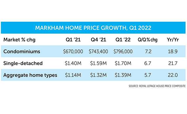 According to the Royal LePage Home Price Composite for the first quarter of 2022, aggregate home prices grew 22 per cent year-over-year to $1.39 million.