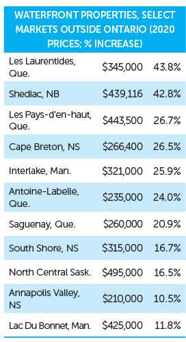 The aggregate price of a house in Canada’s recreational property regions increased 16 per cent year-over-year to $437,156 in 2020 compared to 2019. During the same period, the aggregate price of a waterfront property increased 9.8 per cent to $813,385 and the aggregate price of a condominium rose 10.5 per cent to $310,257.