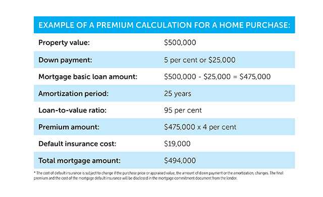 The mortgage default insurance premium is a one-time charge, and it is paid by you to the lender. The premium can be paid in a single lump sum at the time of closing, or it can be added to your mortgage amount and repaid over the amortization period (i.e. the life of the mortgage). The cost of default insurance is calculated by multiplying the amount of the funds that are being borrowed by the default insurance premium, which typically varies between 0.60 per cent and 5.85 per cent. Premiums vary depending on the amortization period of the mortgage, the loan-to-value ratio, the size of the down payment, and the product.